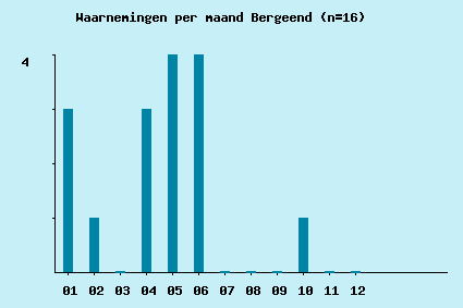 | 2001-06-09 | 20 | 0 | 0 | 2 | 20 | in de sloot langs de Westtangent, Heerhugowaard | 19:24:12 | 2 volwassen bergeenden met een groep van meer dan twintig pullen, een creche dus. Ongeveer 100m verderop zaten er nog 5 volwassen bergeenden in de wei, denkelijk de overige ouders van het stel. Opvallend was dat alle pullen dezelfde leeftijd hadden, namelijk 1 a 2 dagen oud. | SdG |