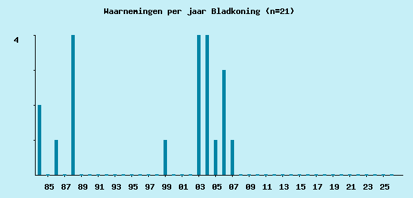 | 2003-10-14 | 1 | 0 | 0 | 0 | 0 | PWN-meertjes duinen Bergen | 19:12:43 | de vogel meer even gezien en daaraan niet kunnen determineren. echter de vogel riep vijf keer en daarop stelde ik vast dat het een bladkoning betrof. | DV |