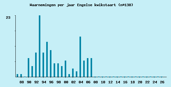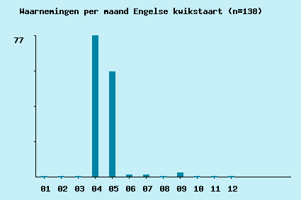 | 1996-04-17 | 100 | 0 | 0 | 0 | 0 | Hbz | 14:51:04 | veel gele kwikken zuidwaard vliegend, het merendeel was Engelse. | FJM; LS |