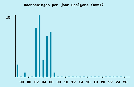 | 2005-02-20 | 6 | 0 | 0 | 0 | 0 | Oude Schulpweg Egmond-Binnen | 19:31:35 | Ook langs Hoge Dijk zijn nog geelgorzen aanwezig. | HS; GMP |