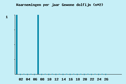| 2007-03-14 | 2 | 0 | 0 | 0 | 0 | Noordzee t.h.v. Hondsbossche Zeewering | : | Zijn te vinden doordat er steeds stormmeeuwen boven hangen. 2x springt een ex. uit het water en dan is de zandlopertekening op de flank te zien. | CW; NN; HN |