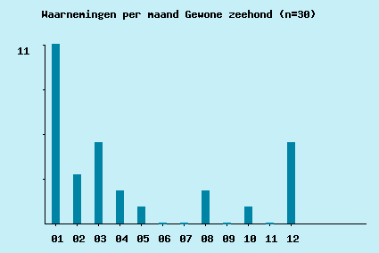 | 2006-01-13 | 17 | 0 | 0 | 0 | 0 | strand Bergen aan Zee-Camperduin | : | Overal koppen vlak achter de branding, o.a. 12 bijeen op ca 1 hectare zee thv De Kerf. Komen naar je toe als je roept. | CSR |