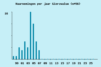| 2006-04-16 | 1 | 0 | 0 | 0 | 0 | Hondsbossche Zeewering | : | overvliegend naar noord | NvH; ea |