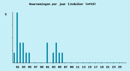 | 2004-11-21 | 1 | 0 | 0 | 0 | 1 | Hbz, net ten zuiden van Petten | : | 1ste winter, korte tijd tp. | RB |
