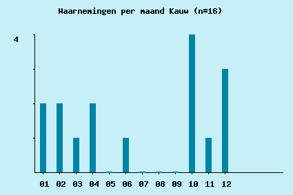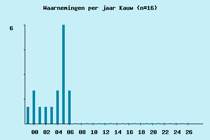 | 2005-01-20 | 4 | 0 | 0 | 4 | 0 | Alkmaar-Daalmeer ter hoogte van de Landman | : | 'Noordse' Kauw: 2 langs de Landman,1 Laantje ,1 Saskerstraat foeragerend op grasstroken met gewone kauwtjes | CH |