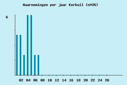 | 2002-03-06 | 1 | 0 | 0 | 0 | 0 | De Meent, ijsbaan | 19:22:45 | binnenvliegend, 1x tegen raam, maar toch weer naar buiten! | HFo |