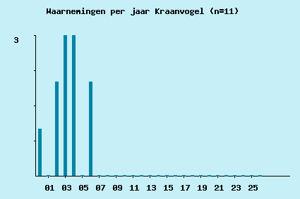 | 2003-02-24 | 1 | 0 | 0 | 0 | 0 | Centrum Bergen | : | Minimaal 1 kraanvogel komt 's morgens laag overvliegen nabij de Ruinekerk. Helaas alleen horen roepen. | CW; CFR |