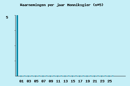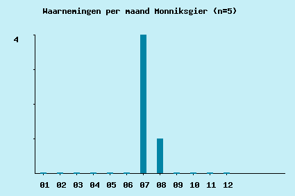 | 2000-07-30 | 1 | 0 | 0 | 0 | 0 | Scholeksterstraat, Groet | 106-526 | Was tot 12:00 aan de grond in Ijmuiden. Ging toen cirkelen. Zo ca 1 uur te zien boven Ijmuiden enKennemerland.(DBA-lijn). Blijkbaar rond 14:00 in Groet, daar snel uit het oog verloren (vloog laag N-NW). Mogelijk weer teruggegaan naar de duinen. Vermoedelijk niet door de HBZ-polder gevlogen (vogelaars aanwezig op HBZ). Later deze dag gezien boven den Helder, doorgevlogen dus naar N. | JS; CtH |
