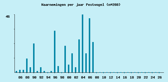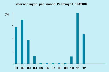 | 2006-02-13 | 80 | 0 | 0 | 0 | 0 | Beethovensingel, Alkmaar | : | De groep die zich nu al ruim een week in Alkmaar Bergermeer (Beethovensingel) ophoudt nam geleidelijk in aantal toe, maar zal nu wel verder trekken want de bessen zijn op. Gedrag: De groep zit 10 tot 20 minuten, soms langer, inactief in de uiterste top van een hoge boom zo'n 50 m verwijderd van een boom met bessen. Eén vogel gaat telkens dicht bij de bessenboom zitten en geeft aan wanneer de kust veilig is. Dan stort de hele groep zich in één keer op de bessen en gaat gedurende niet meer dan 20 of 30 seconden tekeer als een groep piranha's om zich vervolgens weer voor lange tijd in de wachtboom terug te trekken. De laatste dagen gedragen de vogels zich onderling anders. Zij baltsen om elkaar heen in potsierlijke houding, doen of zij elkaar voeren en zonderen zich soms van de groep af. | DB |
