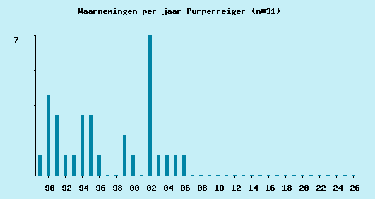 | 2000-05-07 | 1 | 0 | 0 | 0 | 1 | Hargen aan Zee | tussen 9 blauwe reigers vliegend N | SG |