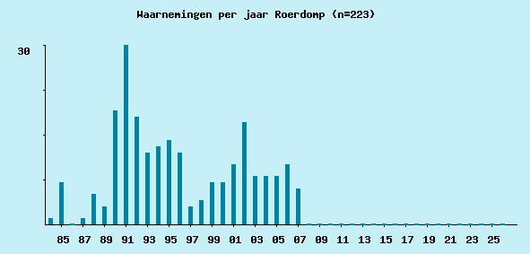 | 1991-01-01 | 1 | 0 | 0 | 0 | 0 | Mijzenpolder | | In periode januari t/m 7 maart 1991 aanwezig. Op 25 februari 2 explaren vastgesteld. | BM |