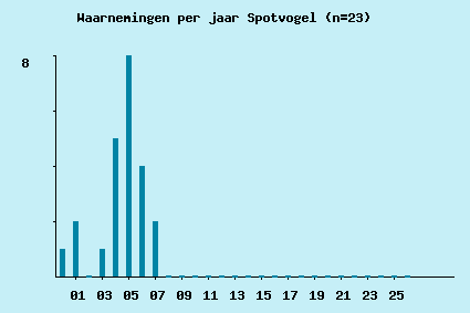 | 2003-05-08 | 1 | 1 | 0 | 0 | 0 | Bosmolenpolder, bij Hoeverweg, Egmond | 19:22:43 | Eerste zang (ook 1 in Zwartedijkspolder); 8-5 1 in Starnmeer, 4-5 1 in Assendelft. | TD |