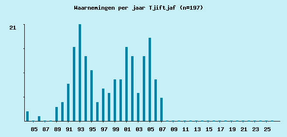 | 2006-01-01 | 1 | 0 | 0 | 0 | 0 | paltrokmolen 1 oudorp | : | tijdens nieuwjaarsbezoek bij mijn moeder in de tuin een fouragerende tjiftjaf. niet horen roepen maar de beverkoog waarneming van de siberische is dichtbij. | RP |