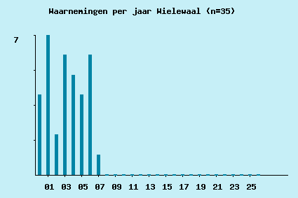 | 2004-05-29 | 3 | 0 | 0 | 0 | 0 | westvoet duin 'De Fuik', PWN-duin Bergen | : | 3 exx in vrouwkleed gezien, steeds man zingend (niet gezien) | CSR |