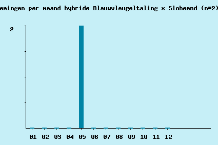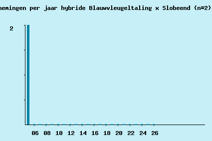 | 2005-05-03 | 1 | 1 | 0 | 0 | 0 | Omgeving Abtskolk | 14:52:12 | Werd als waarschijnlijke Australische Slobeend gemeld op de DBA-vogellijn, na eerdere melding als Blauwvleugeltaling. Commentaar RdB: Wij zijn het niet eens met dat idee vanwege de vorm van de vogel (te slank), de grootte (kleiner dan Slobeend) en de snavelvorm (geen slobbersnavel). Ik denk meer aan een kruising, b.v. met kaneeltaling. Op 9-5 nog altijd hier aanwezig en gefotografeerd door HN. Volgens CSR (VMA-bericht 14-5-2005) duidt de bovenvleugeltekening op hybride Blauwvleugeltaling x Slobeend. (De vogel was ook op 14-5 hier nog aanwezig. RdB) | RdB; RB |